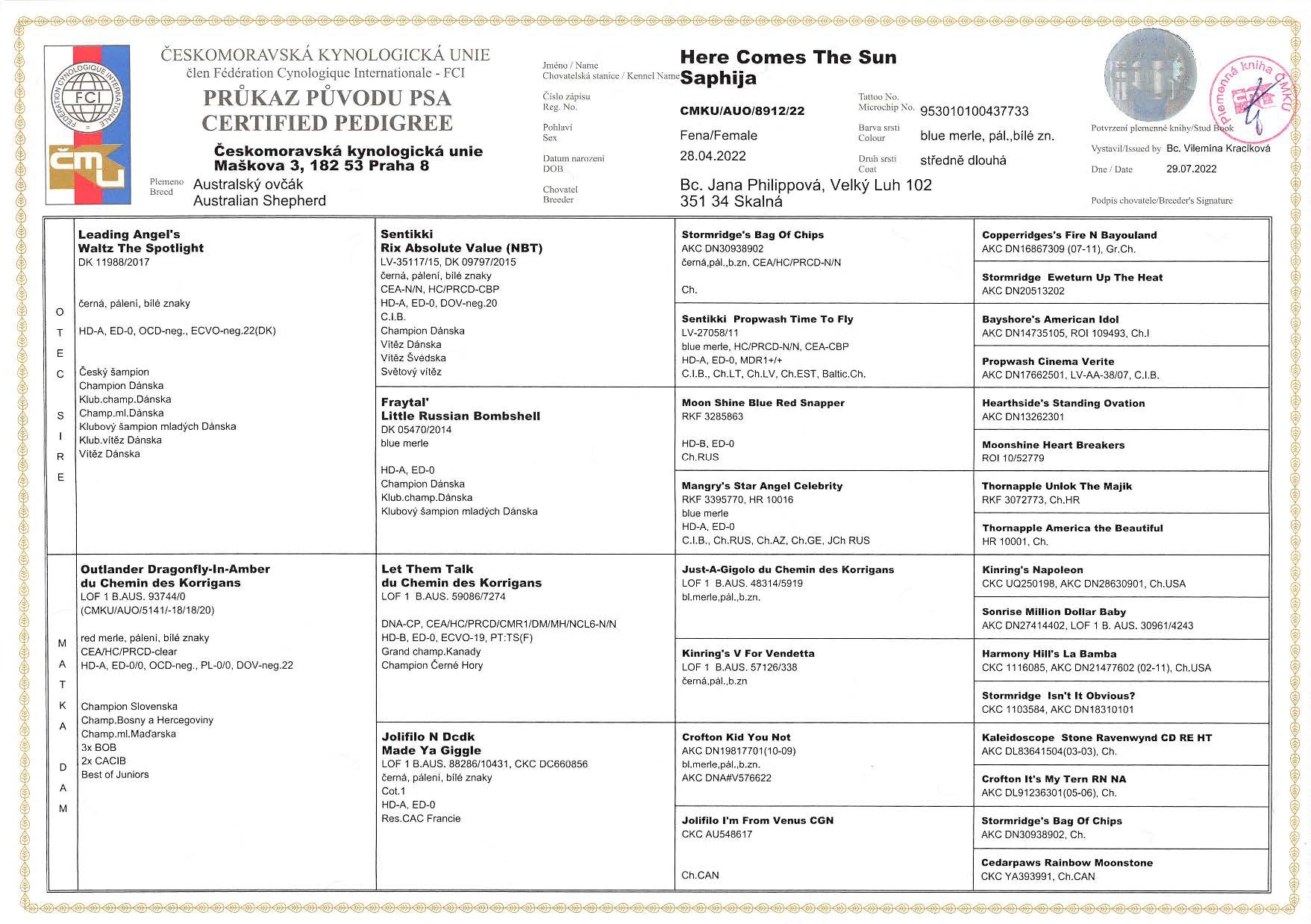 Here comes the Sun Saphija " Baily" stammt aus der Zucht von der lieben Jana Philippova. Vielen lieben Dank für diese tolle Hündin, die unsere Zucht bereichern wird. Ich freue mich schon sehr auf die Entwicklung von Bailey.